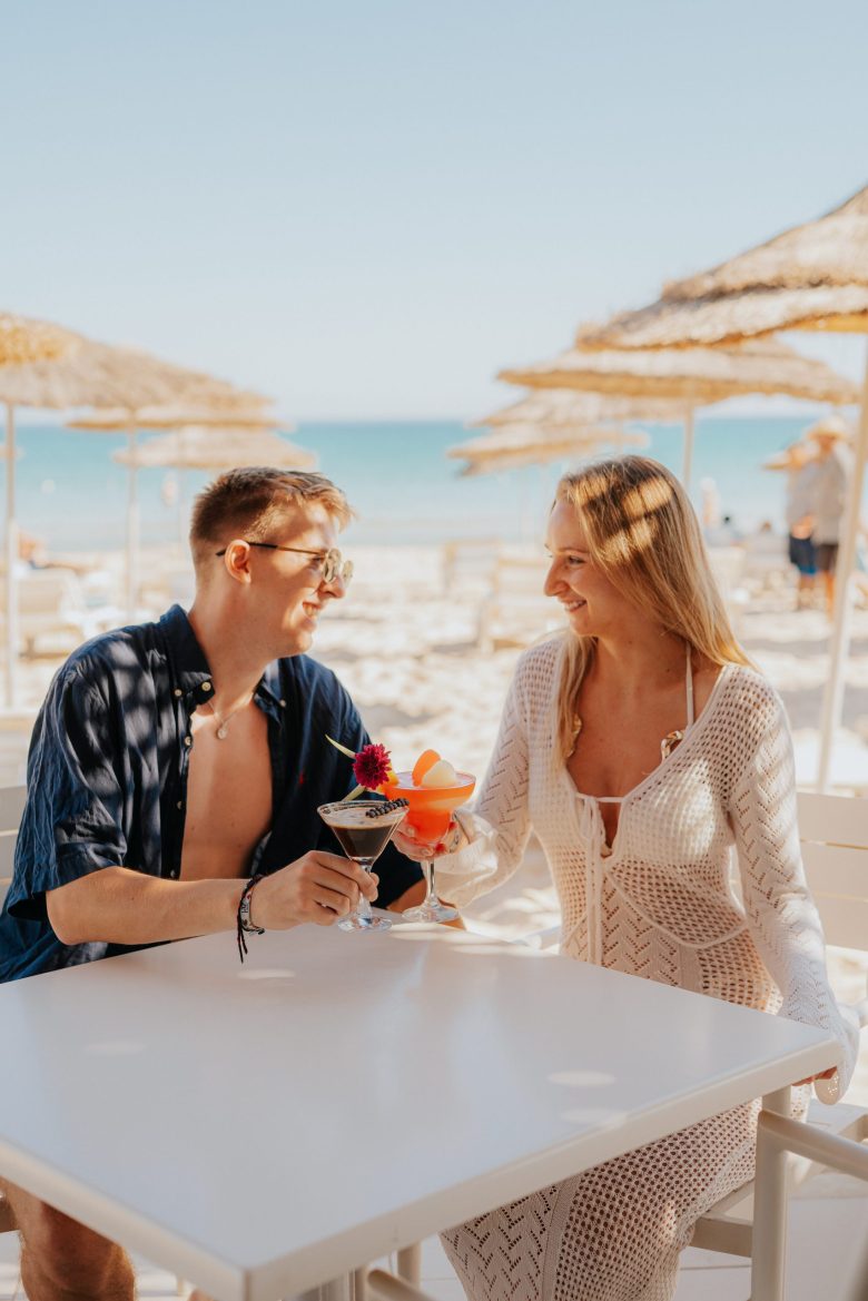De l’aube à la nuit étoilée, notre Beach Bar célèbre la dolce vita au bord de l’eau. Cet espace privilégié sur la plage devient le cœur battant de vos journées, un rendez-vous incontournable où se succèdent les plaisirs simples et les moments d’exception. Commencez votre matinée avec nos petits-déjeuners légers face à la mer, poursuivez avec un déjeuner gourmand à l’ombre des parasols, puis laissez-vous tenter par nos apéritifs créatifs accompagnés de mezze et tapas à partager. Notre mixologie créative revisite les grands classiques avec des touches locales : agrumes frais, herbes aromatiques et épices méditerranéennes. Le sable fin sous vos pieds, la vue infinie sur l’horizon turquoise et le service attentionné de notre équipe composent un tableau parfait. Que vous recherchiez un moment de tranquillité avec un livre et un verre glacé, ou une ambiance conviviale entre amis, notre Beach Bar s’adapte à toutes vos envies. Un écrin de sérénité où le temps suspend son vol, où chaque verre raconte une histoire, où chaque instant se savoure pleinement.