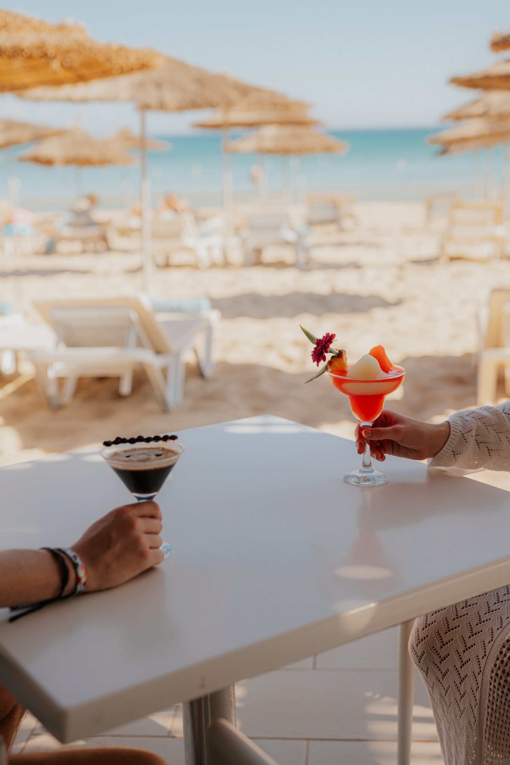 De l’aube à la nuit étoilée, notre Beach Bar célèbre la dolce vita au bord de l’eau. Cet espace privilégié sur la plage devient le cœur battant de vos journées, un rendez-vous incontournable où se succèdent les plaisirs simples et les moments d’exception. Commencez votre matinée avec nos petits-déjeuners légers face à la mer, poursuivez avec un déjeuner gourmand à l’ombre des parasols, puis laissez-vous tenter par nos apéritifs créatifs accompagnés de mezze et tapas à partager. Notre mixologie créative revisite les grands classiques avec des touches locales : agrumes frais, herbes aromatiques et épices méditerranéennes. Le sable fin sous vos pieds, la vue infinie sur l’horizon turquoise et le service attentionné de notre équipe composent un tableau parfait. Que vous recherchiez un moment de tranquillité avec un livre et un verre glacé, ou une ambiance conviviale entre amis, notre Beach Bar s’adapte à toutes vos envies. Un écrin de sérénité où le temps suspend son vol, où chaque verre raconte une histoire, où chaque instant se savoure pleinement.