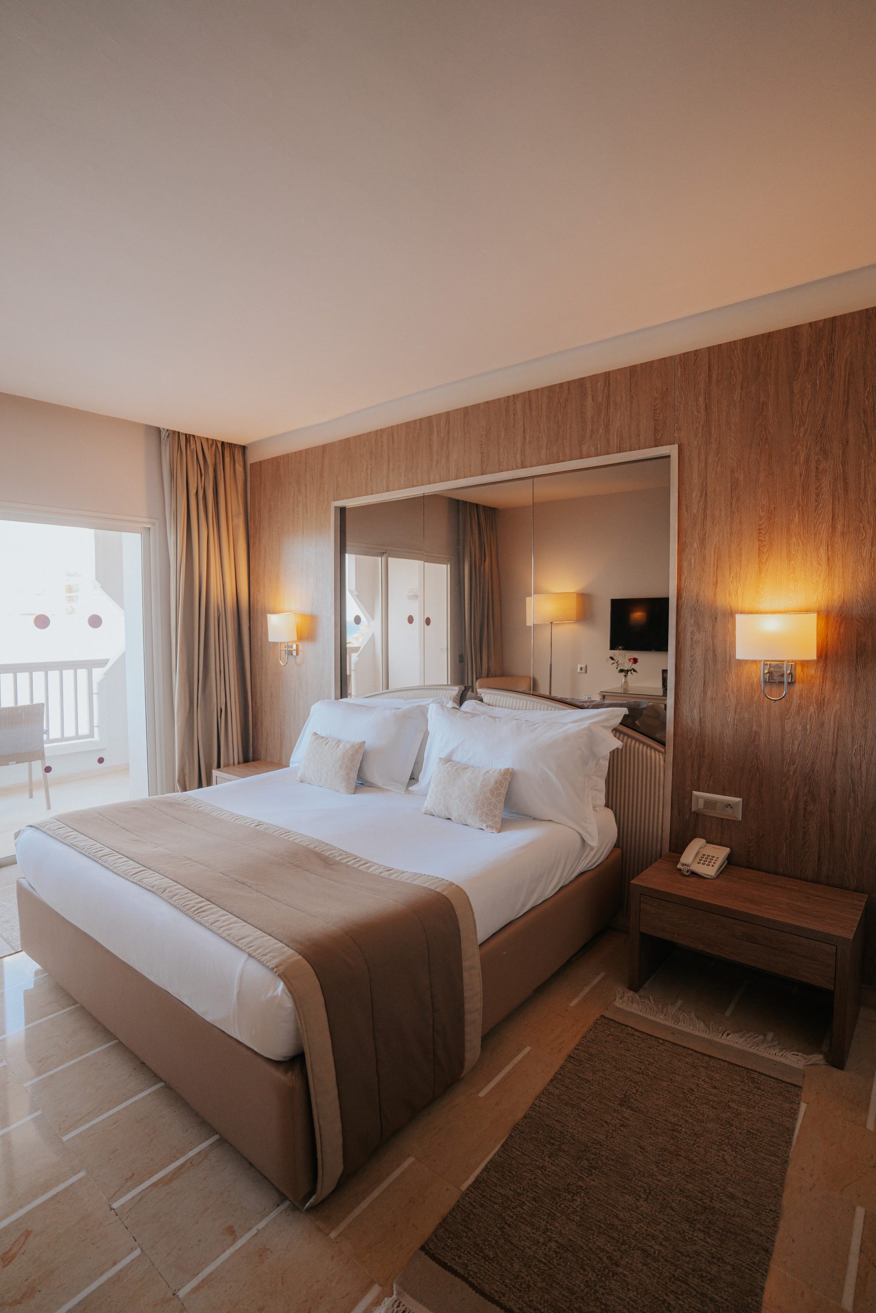 Chambre supérieure deluxe de 26m² Elégante et confortable, offrant plus de facilitées, la chambre Deluxe sera l’endroit idéale pour profiter de votre escapade tunisienne. Vous y apprécierez ses installations de choix, son caractère fonctionnel et sa vue sur la mer pour une expérience des plus agréables.