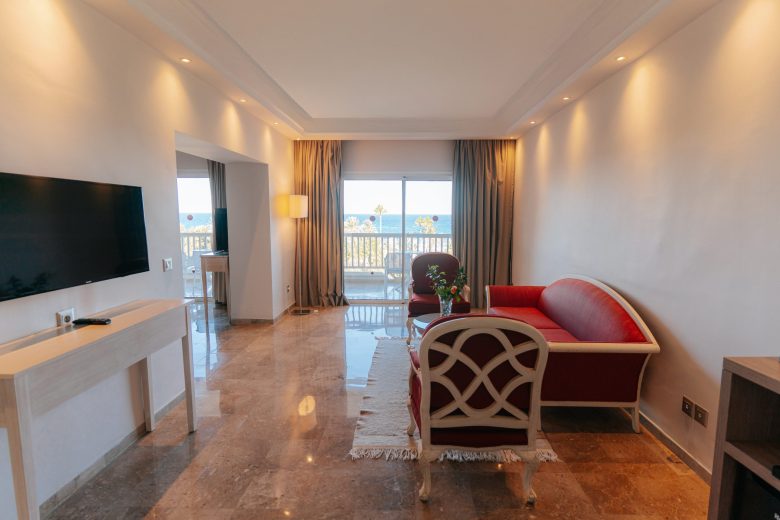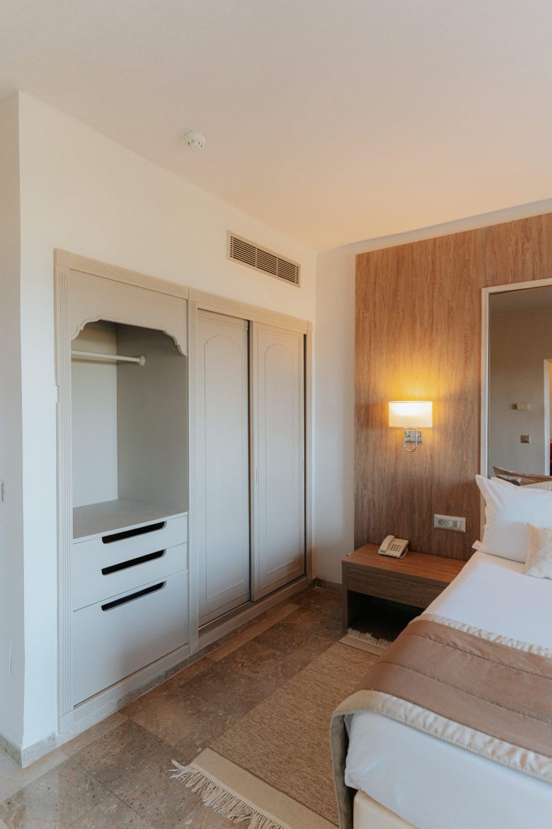 Chambre supérieure deluxe de 26m² Elégante et confortable, offrant plus de facilitées, la chambre Deluxe sera l’endroit idéale pour profiter de votre escapade tunisienne. Vous y apprécierez ses installations de choix, son caractère fonctionnel et sa vue sur la mer pour une expérience des plus agréables.